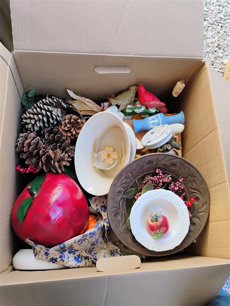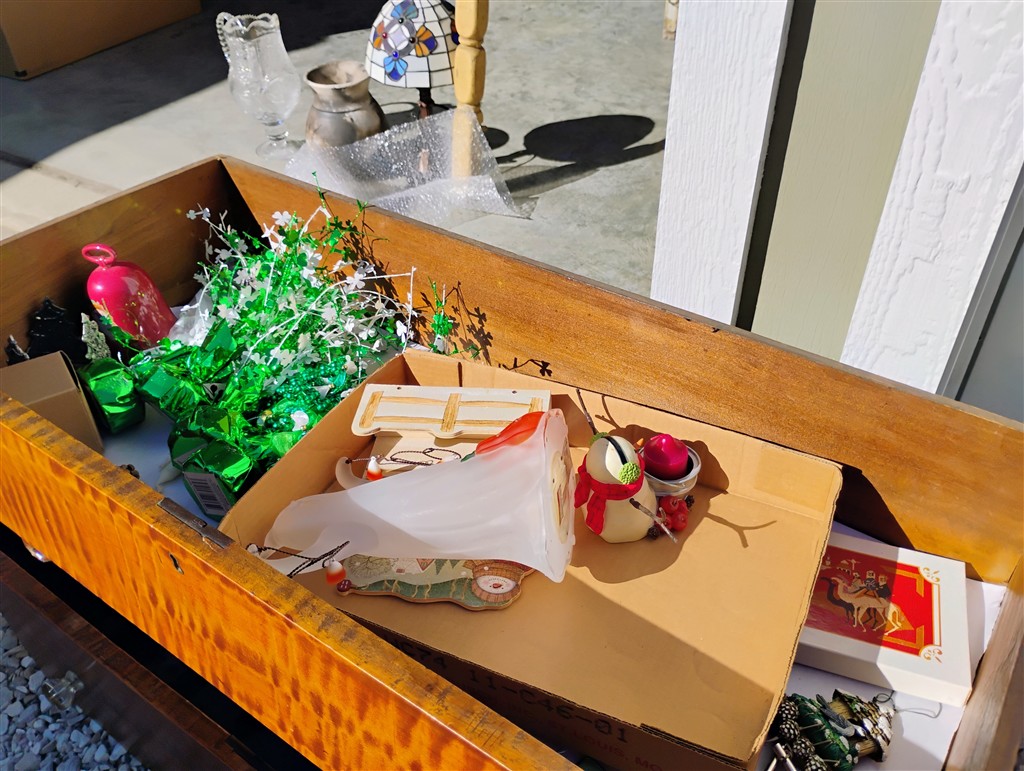 Enamel Ware; Super Right Wood Box; Oak Wardrobe with Mirror; Kodak PIXPRO AZ401 Camera; Fall Decorations; Christmas Decorations; Quilts; Vizio Flat Screen TV; Sony Flat Screen TV; Instant Pot; Medical Scale; Wood Card Table with Matching Chairs; Small Kitchen Appliances; Corning Ware; Oimis All in One Countertop Oven; Baking Ware; Children’s Toys; Side Tables; Chest of Drawers; Sanlida Mixer; Cut Glass; Stained Glass Lamp; Kerosene Lamp; Political Pins; Advertising Pieces; Fasteners; Reel to Reel Tape; Brass Scale; Baskets; Griddle; Kenmore Mini Fridge