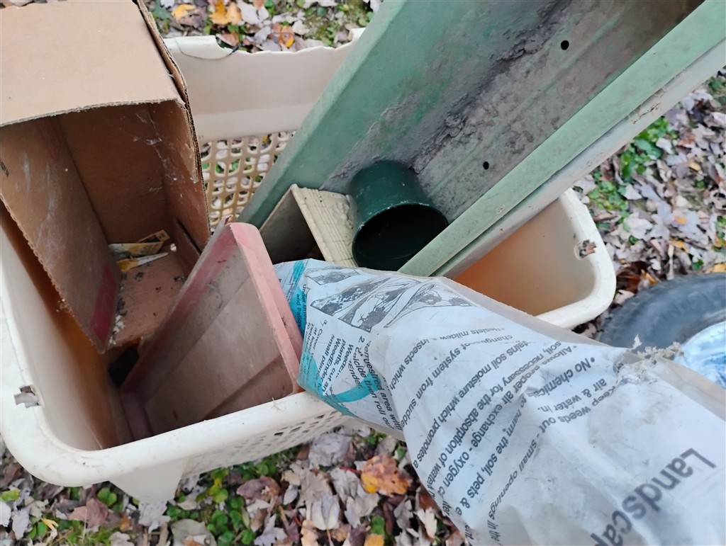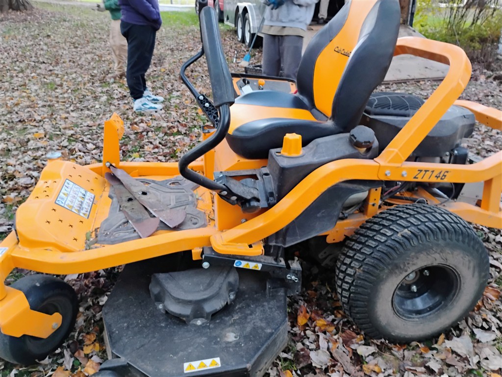 Cub Cadet ZT146 Zero Turn Lawn Mower: Ranch King Snow Blower; Agrifab Lawn Sweep; Yard Cart; Flowerpots; Push Mower; Ross Bicycle; Folding Chair; Gardening Tools; Garden Watering Wand; Bird Feeders; Weber Small Grill; Long Handled Yard Tools; Bird Houses