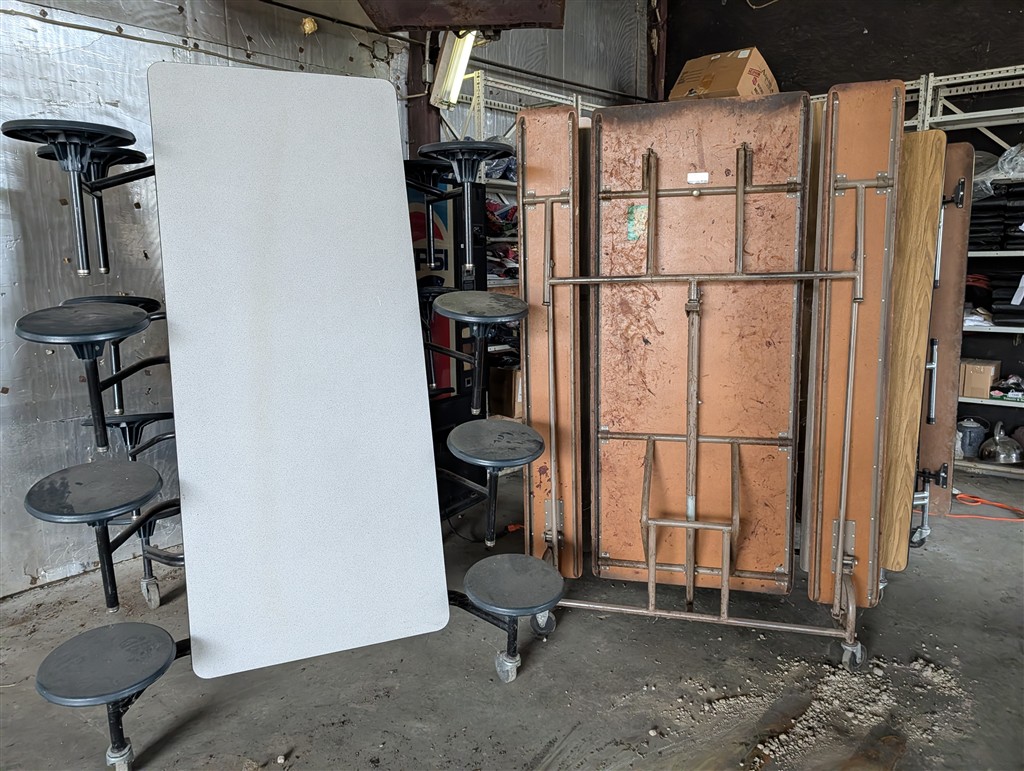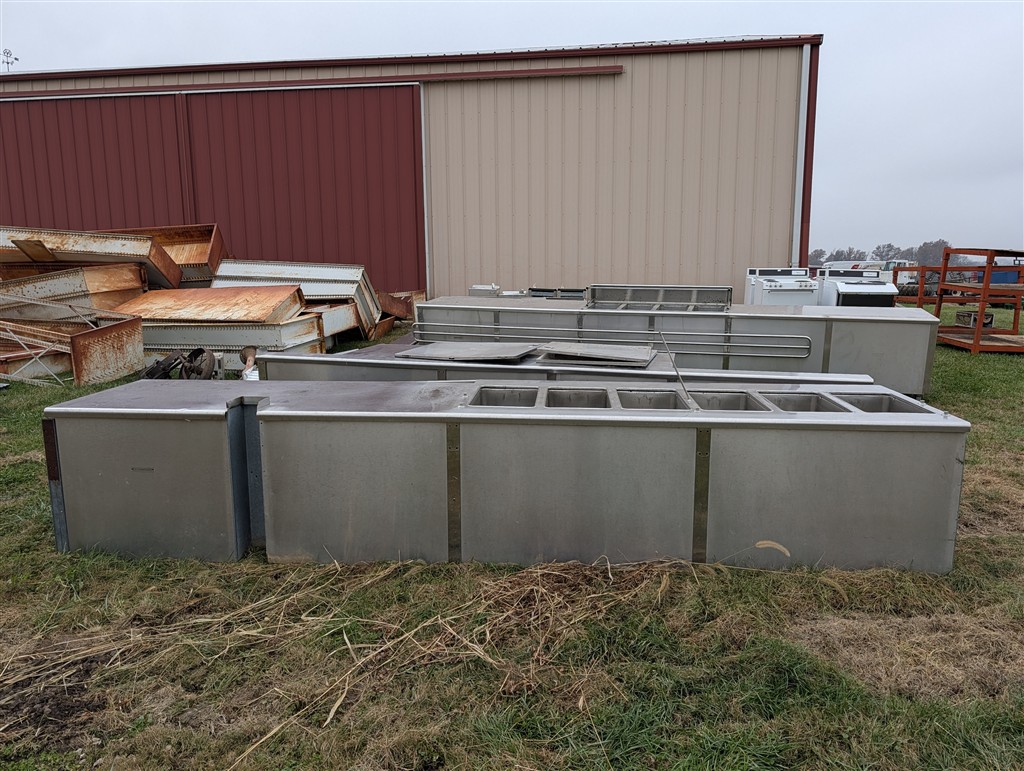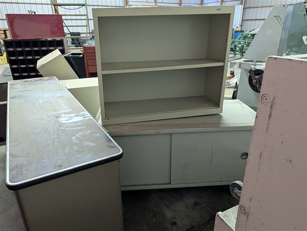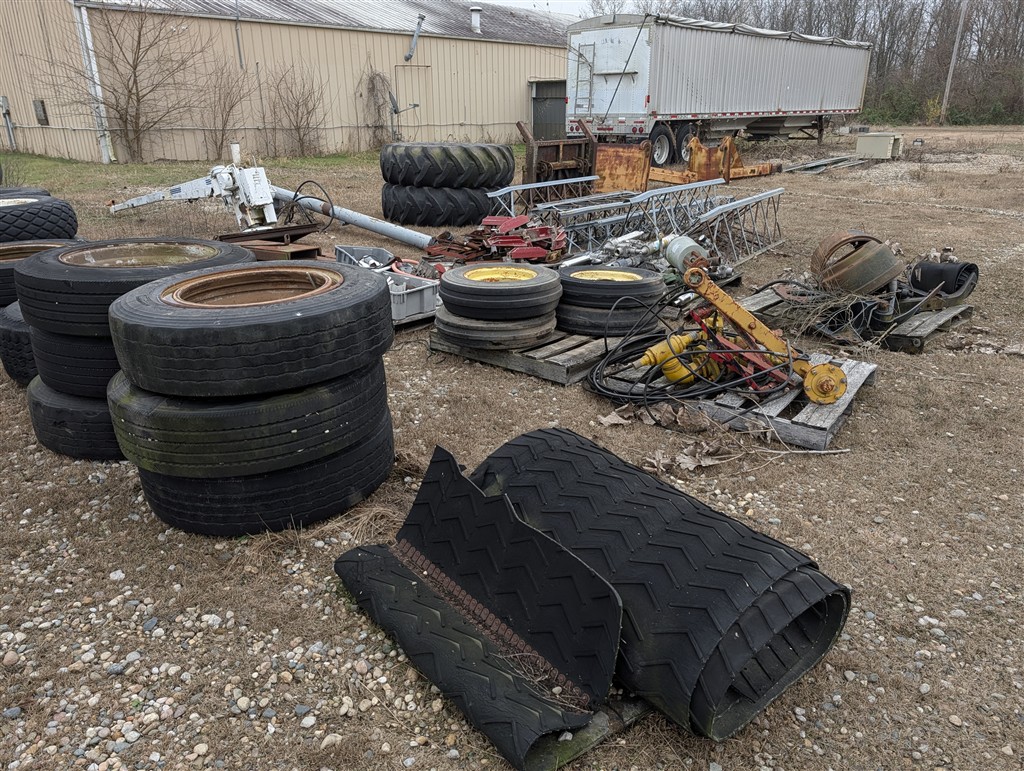 Spools Of Wire Rope; (2) 68X50X32 Terra Tires On 10 Hole Rims; (2) 30.5 X 32 10 Hole Floater Tires; Ag Tires; Semi Tractor Tires; Trailer Tires; Implement Tires; Stainless Steel Serving Bars; Water Fountains; 50 Gal Fuel Tanks; 100 Gal Fuel Tanks; Semi Headaches, Fenders, Tool Boxes, Wheels, Fuel Tanks; Lankota Stalk Stompers; ATV Blade; Electrical Boxes; Office Chairs; Truck Hitches; Plumbing Supplies; Casters; Tractor Top Link; Air Lines; Fill Rite Fr 42109 Pump; 134A Refrigerant; Tractor Seat In Box; IH Tractor Motor 6 Cyl Diesel; Several Quick Hitches; Several IH Tractor Weights; 1000 Gal Fuel Tanks W/Pumps; Portable Restrooms; Shop Chemicals; Shop Heater; IH Motors; Engine Blocks & Parts; Ladders; Aluminum Extension Ladder; Auction Truck Topper; File Drawers; Chairs; Folding Tables; Platform Scales; 500 Gal Fuel Tank W/Pump; Crane For Truck; School Lockers; Lights; 30+ Floor Standing Pressed Board School Cabinets; 30+ Wall Mounted Pressed Board School Cabinets