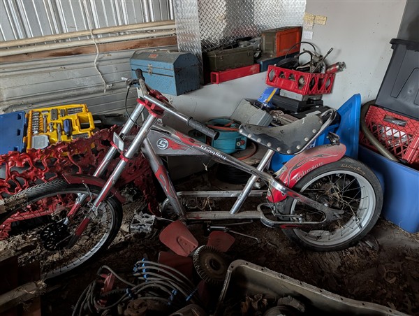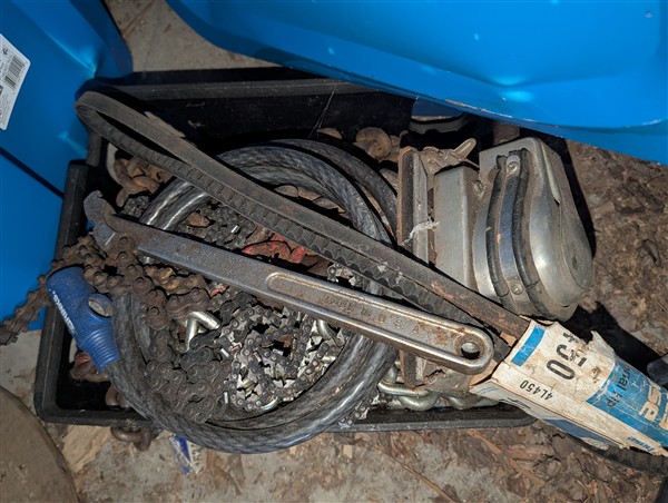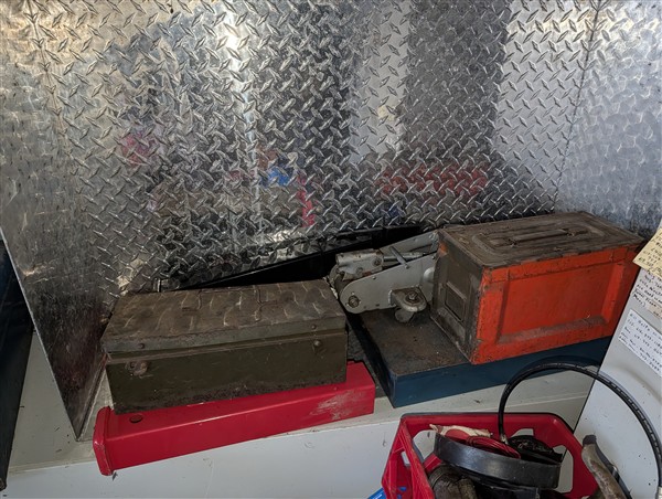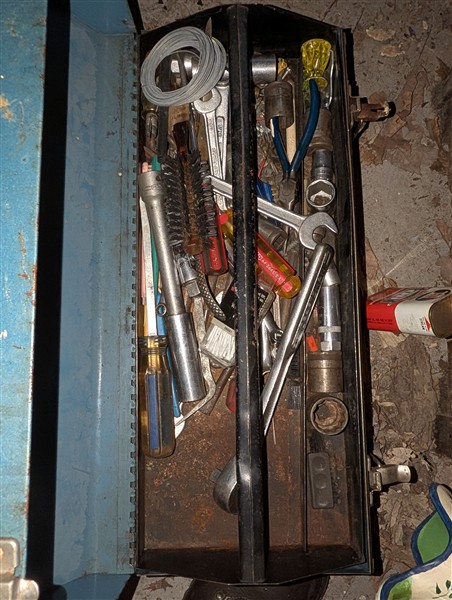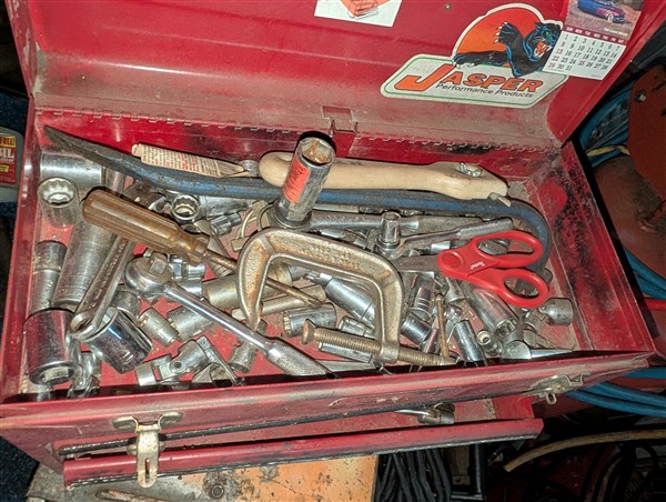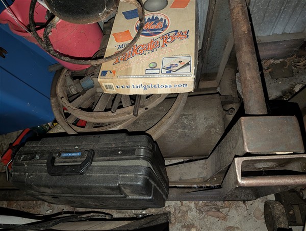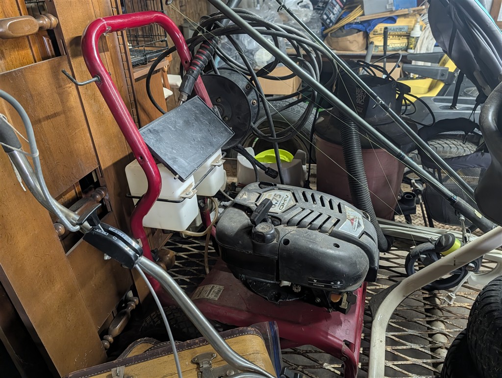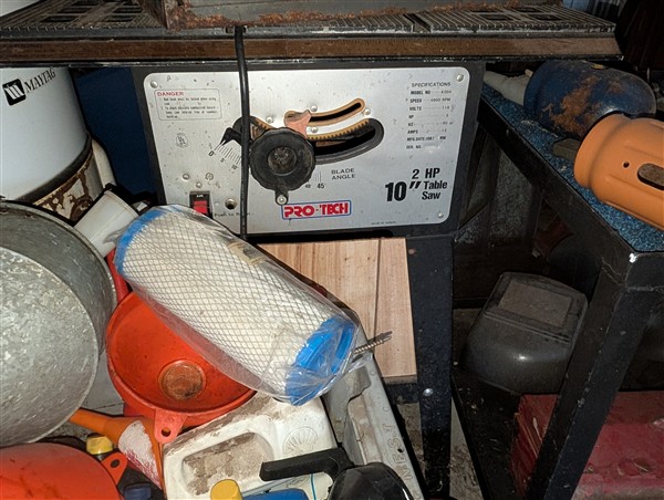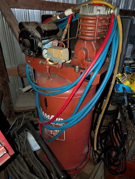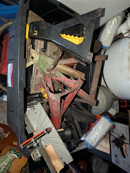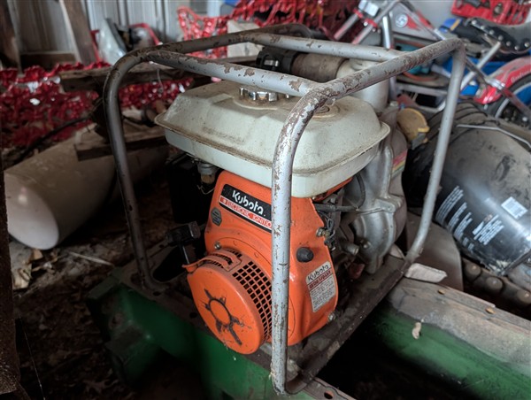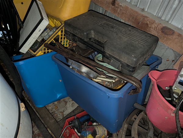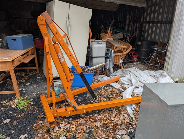 Hydraulic ATV Lift; Engine Crane; Propane Torch on Dolly; Worx Folding Wheel Barrow; 30-Gal Waste Oil Tank; Kubota Water Pump; Ratchet Straps; Power Tools; Jack Stands; EZ Up; Long Handled Tools; Hydraulic Jacks; Large Pullers; Blue Grass Tool Box; C-Clamps; Dunlap Ignition Wrench Set; NAPA Tool Set; Air Tools; Ram Air Vertical Compressor; Hitches; Welding Cart; Railroad Jacks; Stick Welder; Small Table Saw; Kennedy Machinist Box; Limb Saw; Senko Duras Pin Fastner System; Corded Dewalt Drill; Flashlights; Galvanized Funnel; Sockets; Ratches; Wrenches; Screw Drivers; Craftsman Tools; Pipe Wrenches; Pittsburg 1.5T Aluminum Floor Jack; Hardy 1000 Electric Pressure Washer; Many Tool Boxes; Engine Parts; Gas Cans