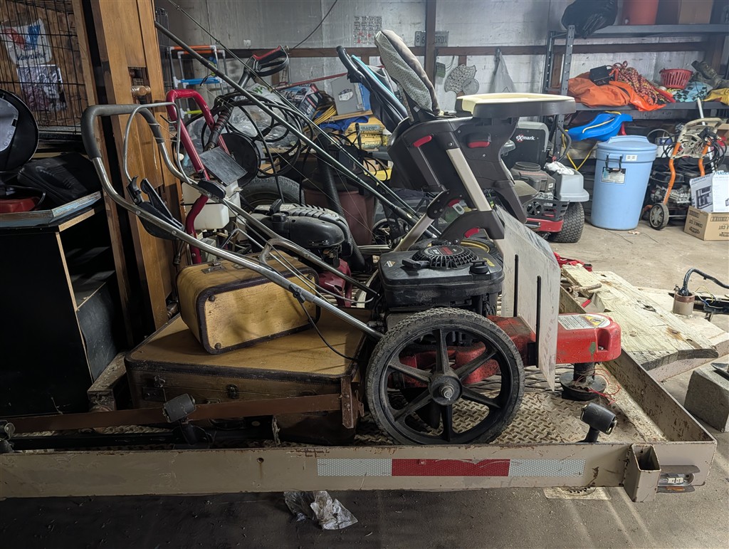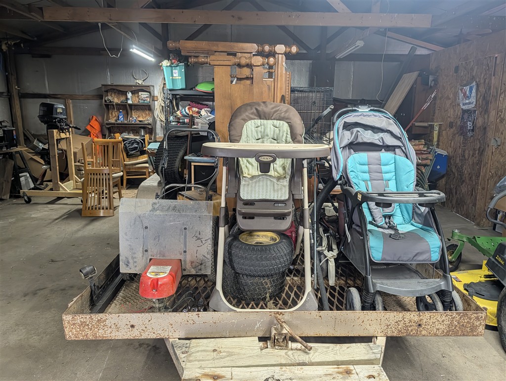 Polaris Ranger 500 SXS w/ Enclosed Cab-Turn Signals; Like New Frontier 8’ sickle Bar Mower; 2 Wheel 5’x8’ Trailer; Bush Hog 8’ Hydraulic Adjust Blade 3pt; 2 Wheel 4’x8’ Trailer; Schwinn Stingray Bike; Golf Clubs; Crossman Pellet Gun; Husky Yard Cart; Weber Propane Grill; Wicker Outdoor Furniture; Backpack Sprayer; Cast Iron Patio Furniture; Washers Game; Propane Cooker; Echo Chain Saw