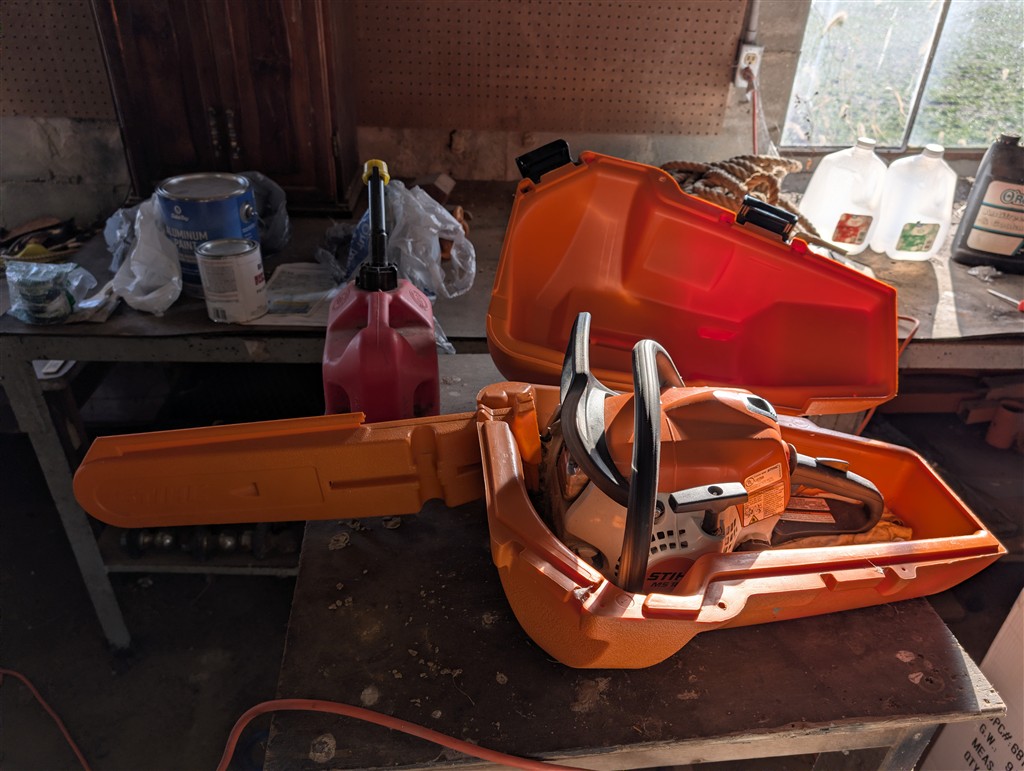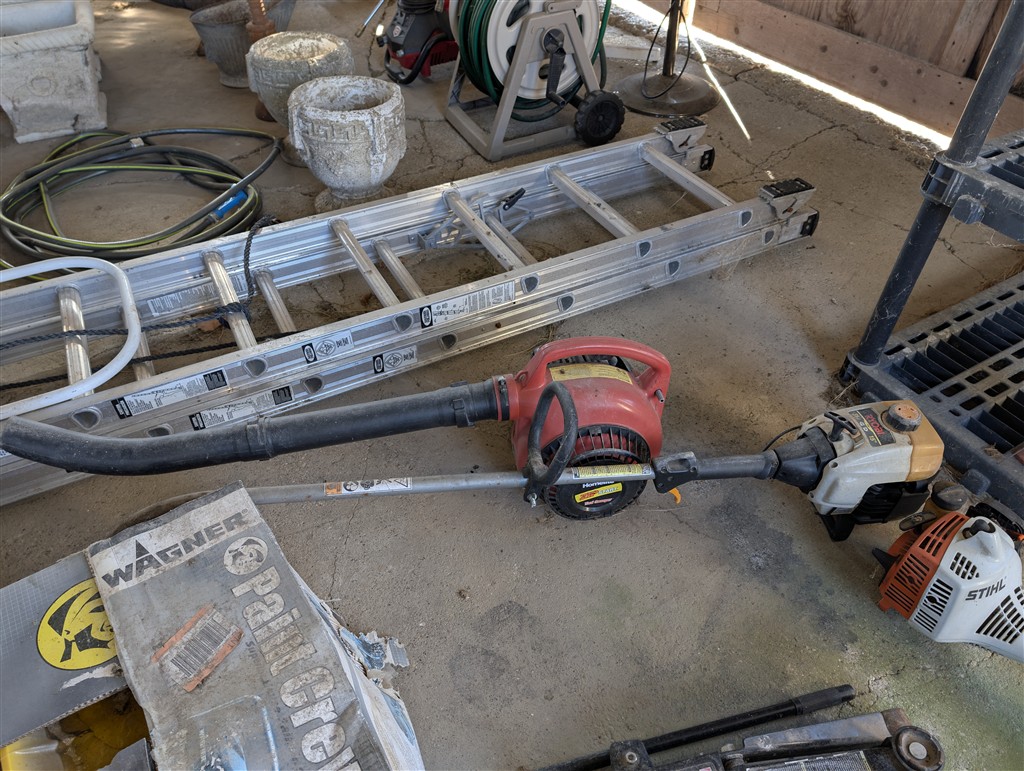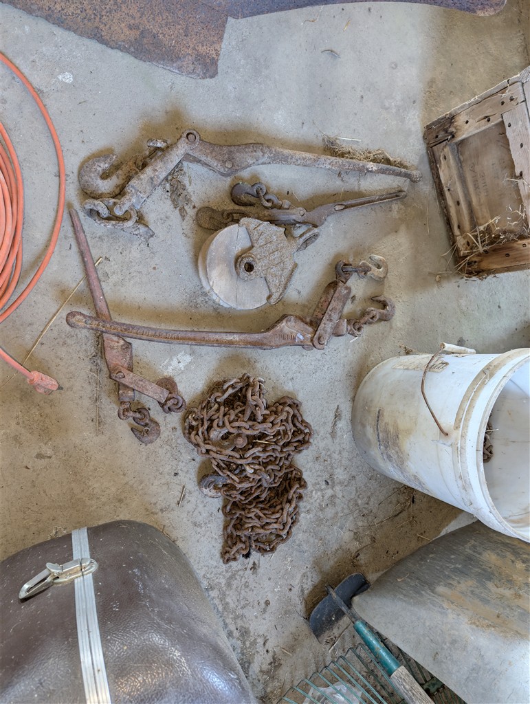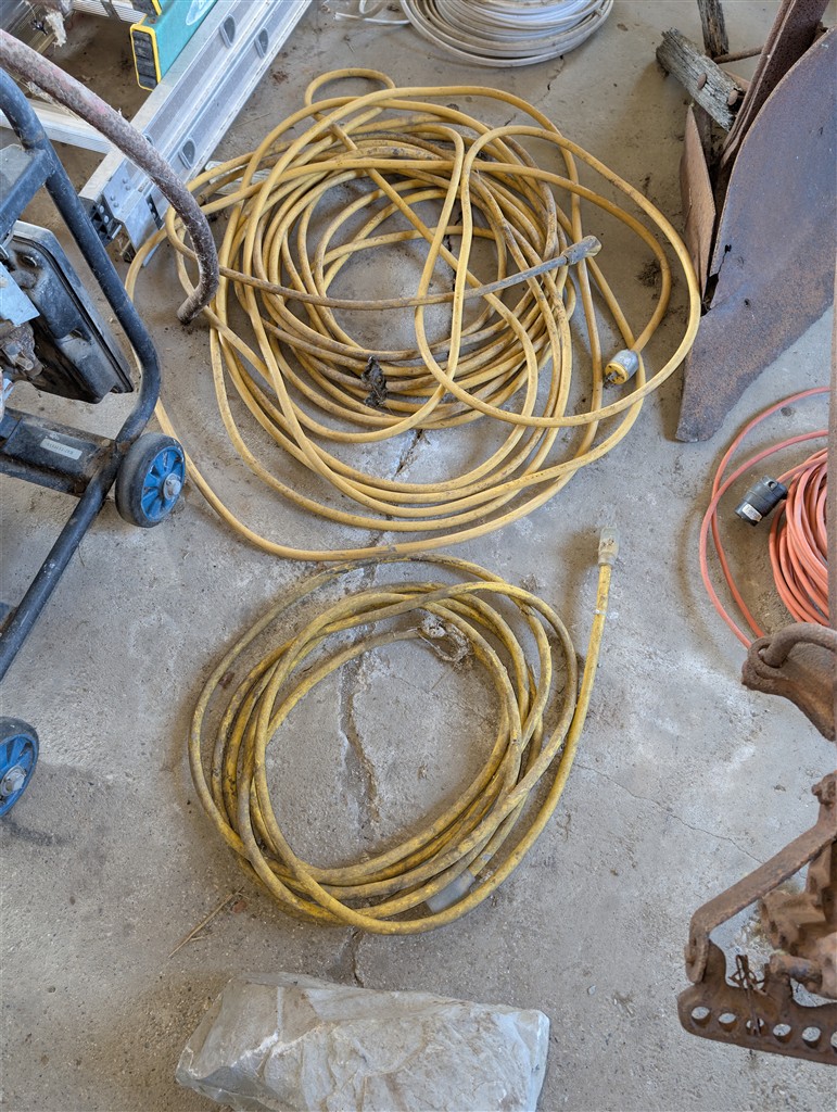 Honda EM5000s generator; Stihl MS 181c Chainsaw AMSCR Bench Vise; Craftsman Bench Vice; Chains; Boomers; Wood Ladders; Cable Come-A-Long; Hand Tools; Wrenches; Hitachi Chop Saw; Craftsman Rolling Compressor; Black Jack 3T Floor Jack in Box; Heavy Extension Cords; Crow Bars; Hammers; 2 1/4T Craftsman Floor Jack; 2 Jack Stands; Werner 12’ Aluminum Extension Ladder; Werner 4’ Fiberglass Ladder; Craftsman Electric Pressure Washer; Copper Wire; Anvil; House Jacks; Hitch Carrier; Hitches; Milking Leads; Craftsman Pressure Washer