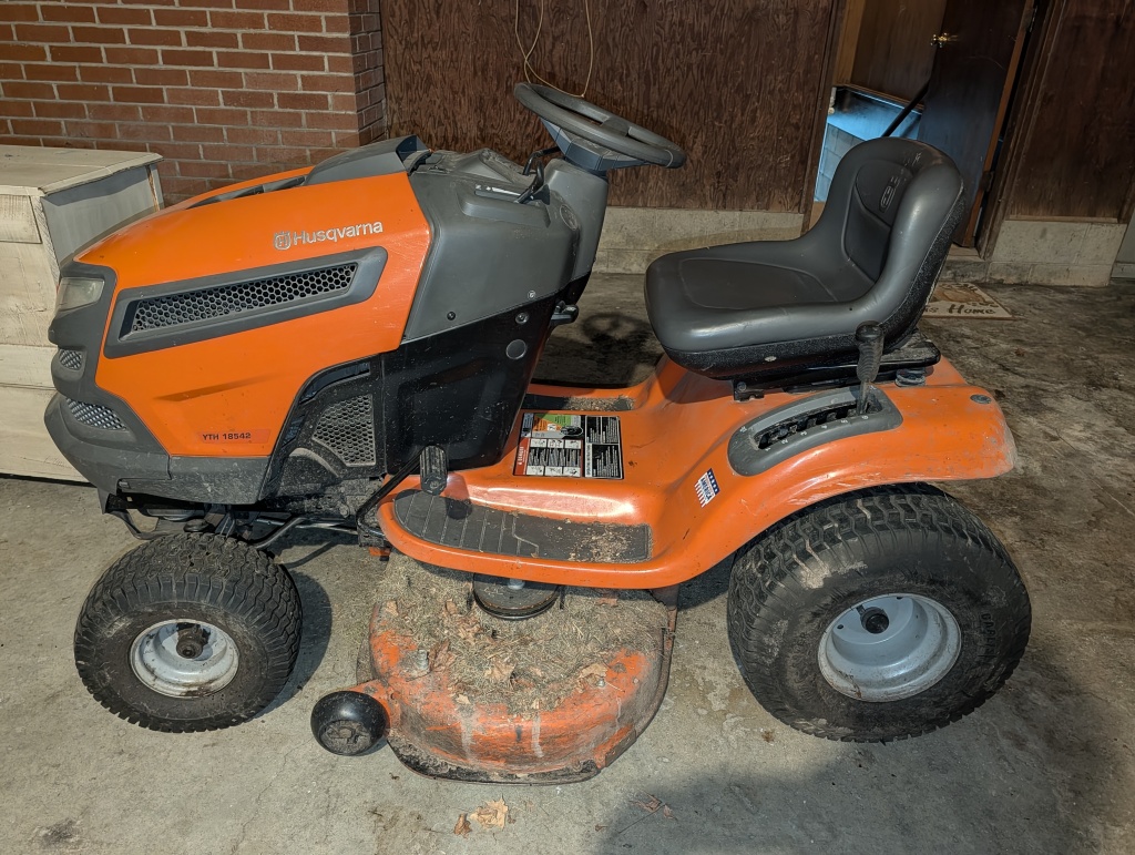 Husqvarna Riding Lawn Mower; Collapsible Wire Pet Kennel; Metal Shelving Unit; U.S. General Rolling Tool Box; DeWalt Drill Bits, WD-40, Hammer; (2) Cordless Drills with Batteries; Hammer, Staples, Screwdrivers; Good Year Air Hose Kit; Tolls & Yard Supplies: Paint Roller; Cleaves; Tools, Light, Hoses, Square; PlayStation1 Games; PlayStation 2 & 4 Games; Nintendo GameBoy Blue Game Cartridge; Nintendo 3DS Kingdom Heart Dream Drop; PlayStation, Nintendo, GameBoy Final Fantasy Games; Nintendo Wii Games; Sega Genesis Game System; PlayStation2 Slim Game Station; Wii Game System; Step Up Step Down Transformer; Round Drop Leaf Kitchen Table; BeachBody Insanity Work Out Video; GE Washing Machine; GE Electric Dryer; Plastic Storage Shelf – 48″; (8) Pint Canning Jars; (3) Quart Jars; Children’s Truck Toys; Futon Frame – No Cushion; Children’s Books & Toys on Small Bookshelf; Little Tikes Rocket Ship Play House; GoldStar Microwave